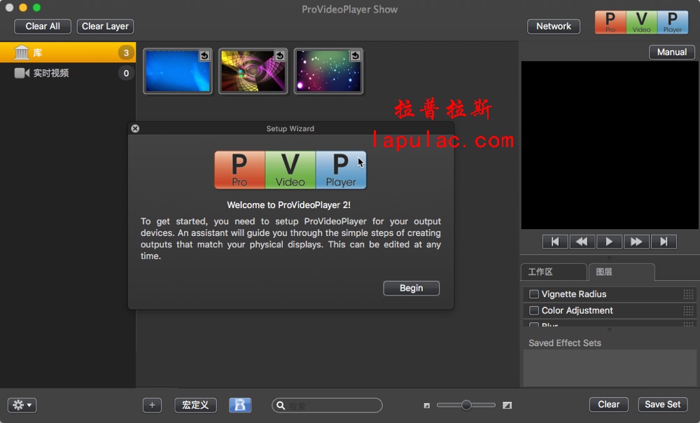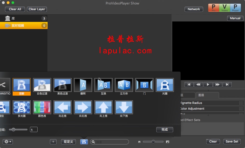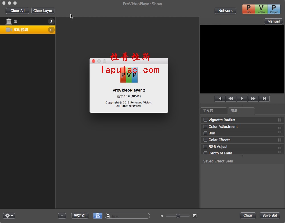 ProVideoPlayer(PVP) for Mac 已被用于世界各地创造视频墙,数字标牌,动态升级等等。PVP允许你导入整个视频剪辑库为一个简单的界面和混合实时创建有影响力的视频舞台表演。一个易于使用的直观的界面,你可以建立多个播放列表,以备任何事件。在PVP中,你可以修改颜色,速度,而不影响原文件视频播放参数。你可以设置剪辑过渡自动循环,甚至手动交叉淡入淡出一个视频到另一个。