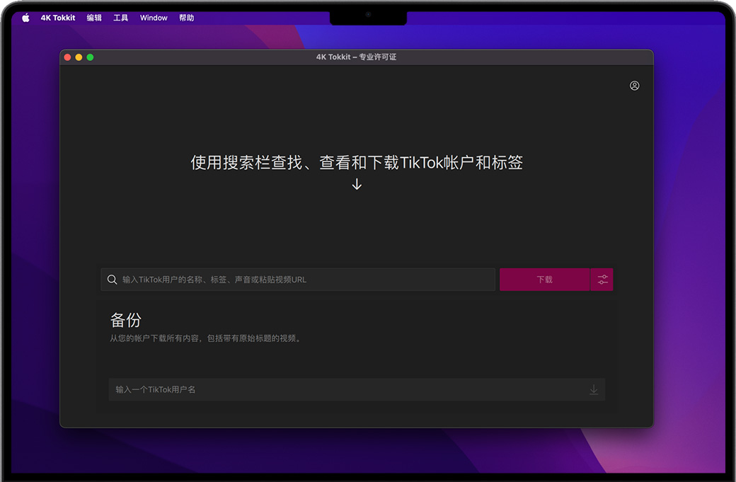 4K Tokkit Pro for Mac 是一款海量抖音国际版(TikTok)内容下载的终极应用程序。以高质量保存TikTok挑战、字幕、整个帐户、主题标签和单个视频。离线观看TikToks,浏览没有广告的TikTok提要,将剪辑重新发布到其他社交网络。一键下载来自TikTok标签和用户的所有视频!