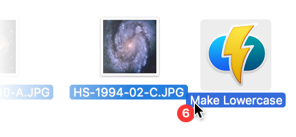 或者,您可以将设置存储到Droplet迷你应用程序中,然后通过将文件直接拖到Droplet的图标上来执行重命名。