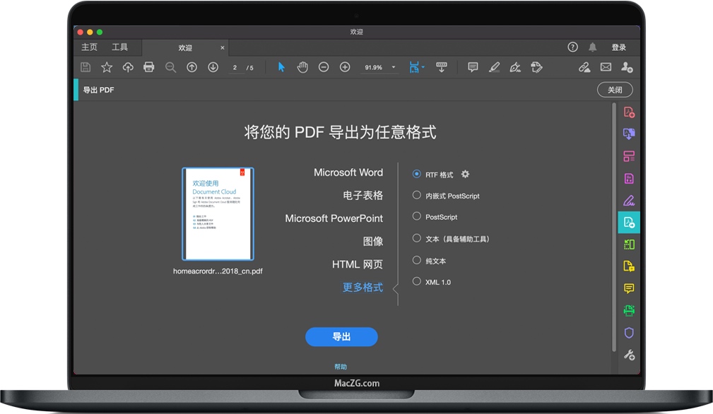 借助Adobe Acrobat DC,您可以将各种文件格式转换为易于共享且在任何屏幕上看起来都非常漂亮的高质量PDF。