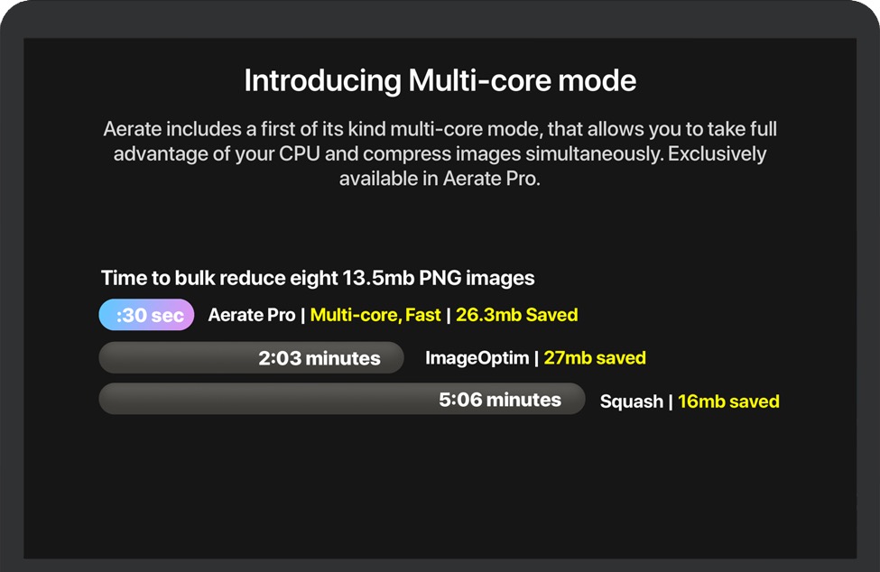 Aerate 包括对 PNG 压缩的行业领先支持以及对 JPG 设置的损失设置支持。