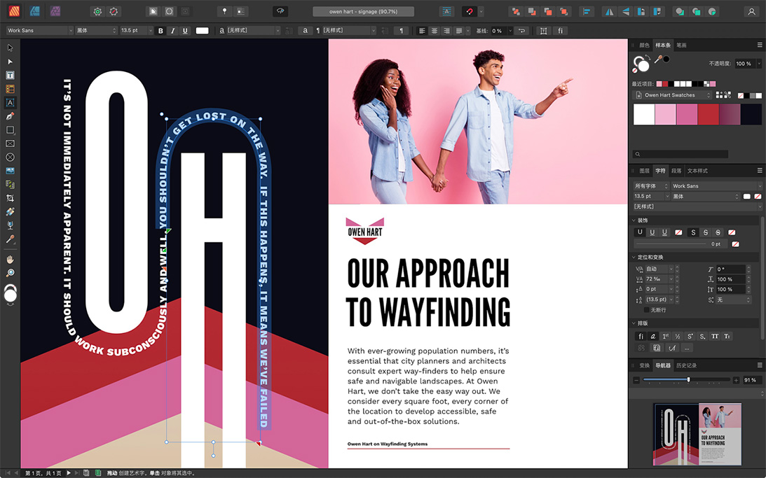 借助 StudioLink,无需离开 Affinity Publisher 即可立即切换到 Affinity Photo 的高级照片编辑功能和 Affinity Designer 的精确矢量工具