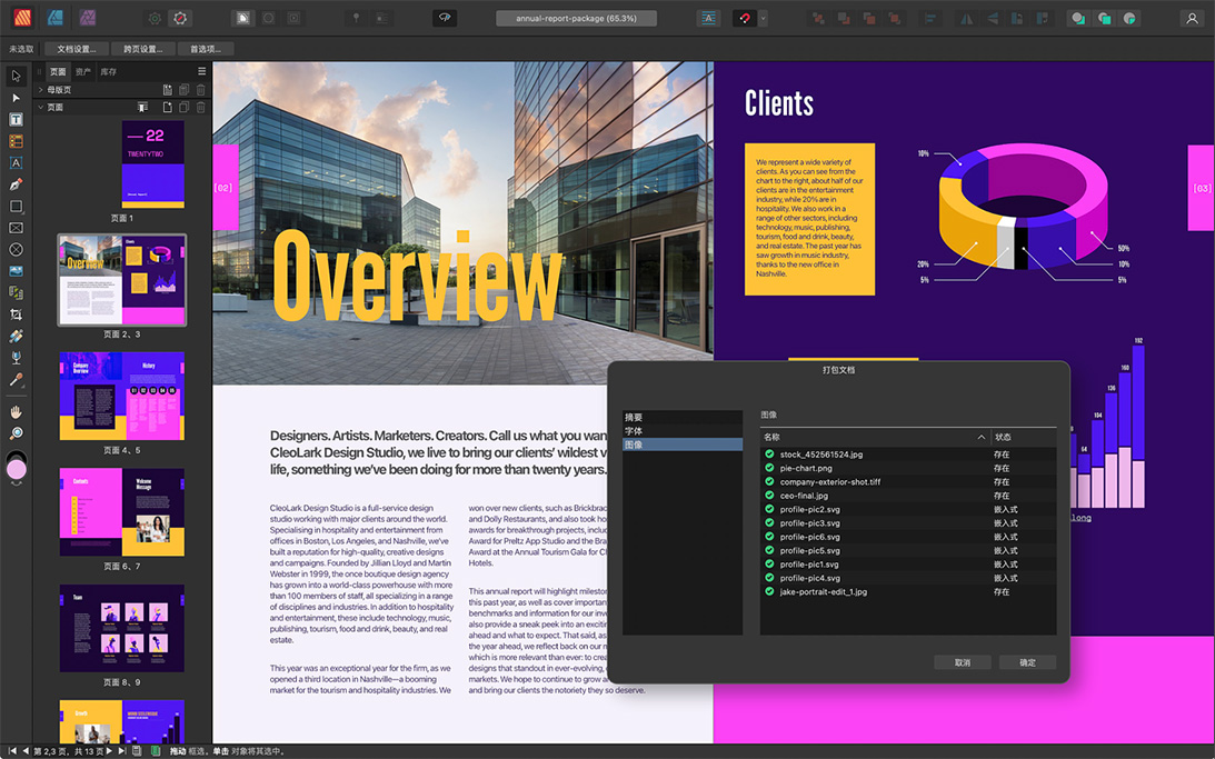 使用“打包”功能将您的文档与所有使用的图像和字体资源一起整理到一个文件夹中