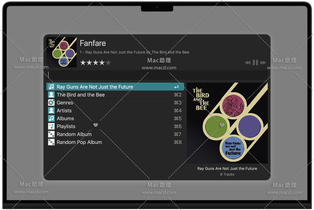 用阿尔弗雷德的内置迷你播放器从键盘控制iTunes;搜索您的iTunes音乐收藏,按流派选择或播放随机专辑。