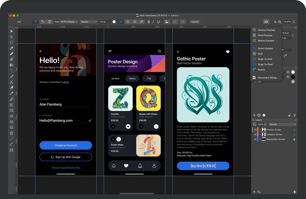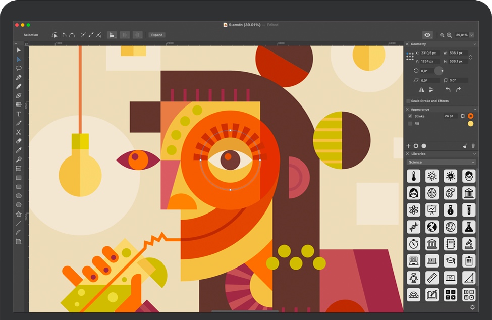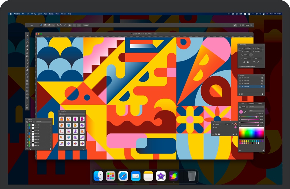 Amadine是矢量图形设计专业人士以及具有创新思维的业余爱好者的理想解决方案。该图形设计应用程序经过精心开发并关注用户需求,提供了各种工具和功能,以将最疯狂的想法变为现实。用户友好性和最先进的矢量绘图工具一起确保了平滑的学习曲线。不同的平台:macOS,iPadOS和iOS在您所有设备之间实现了完美的平衡。