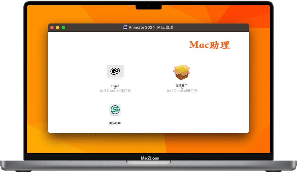 Animate 2024下载完成后,打开软件包如上图,请参照Adobe苹果Mac版全家桶安装指南进行安装即可。