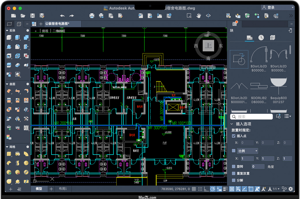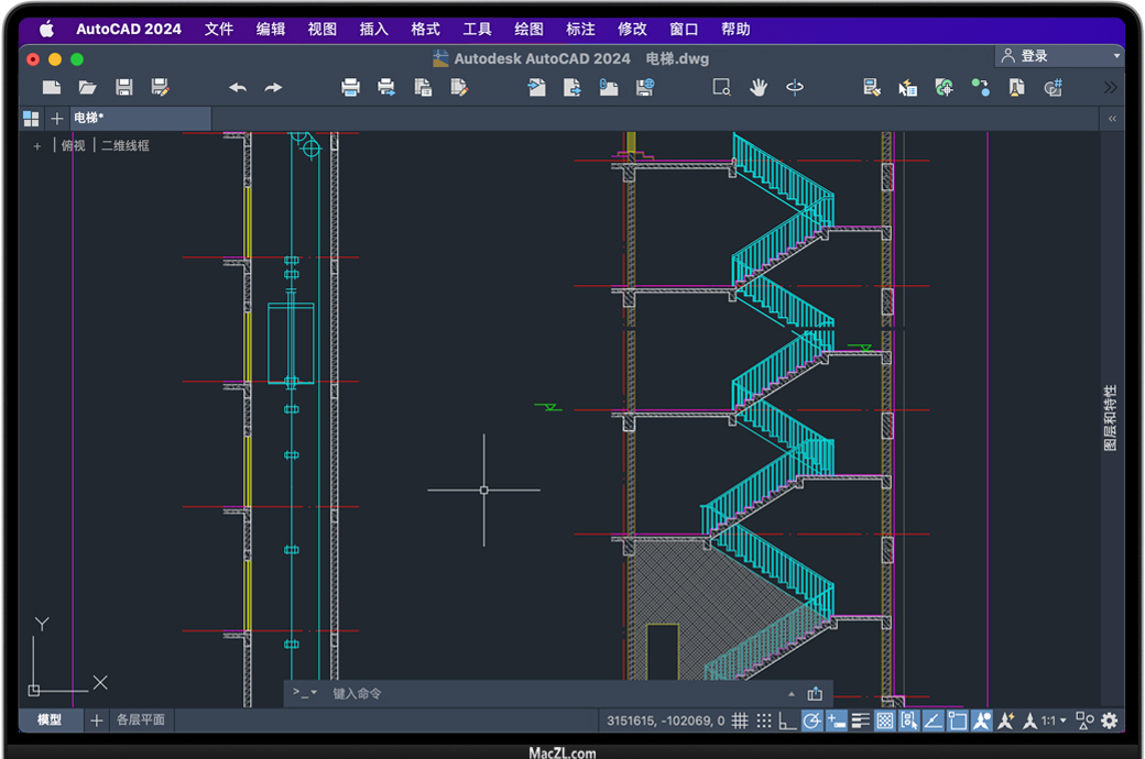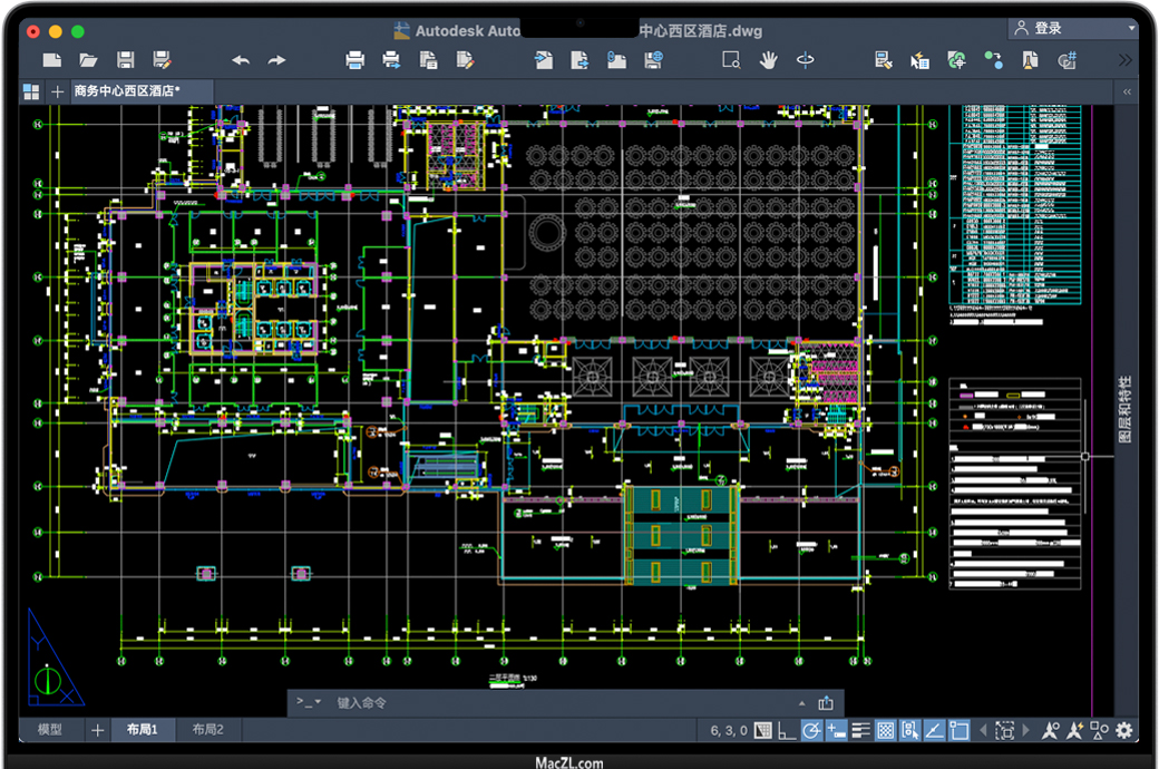 AutoCAD 2025 for Mac 是一款在苹果macOS上运行的辅助设计(CAD)软件,用于对实体、曲面、网格对象、文档功能等进行精确的二维和三维绘图、设计和建模。AutoCAD 2024包括自动化任务和提高生产力的功能,如比较图形、计数、添加对象和创建表格。它还提供了七个特定于行业的工具集,用于电气设计、工厂设计、建筑布局图、机械设计、3D绘图、添加扫描图像和转换光栅图像。AutoCAD允许用户通过Mac桌面创建、编辑和注释图形。