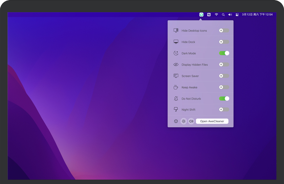 AweCleaner菜单栏开关