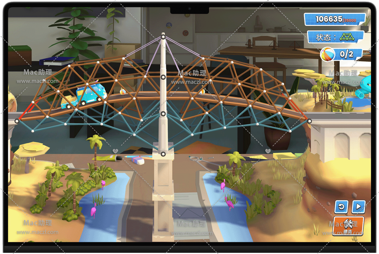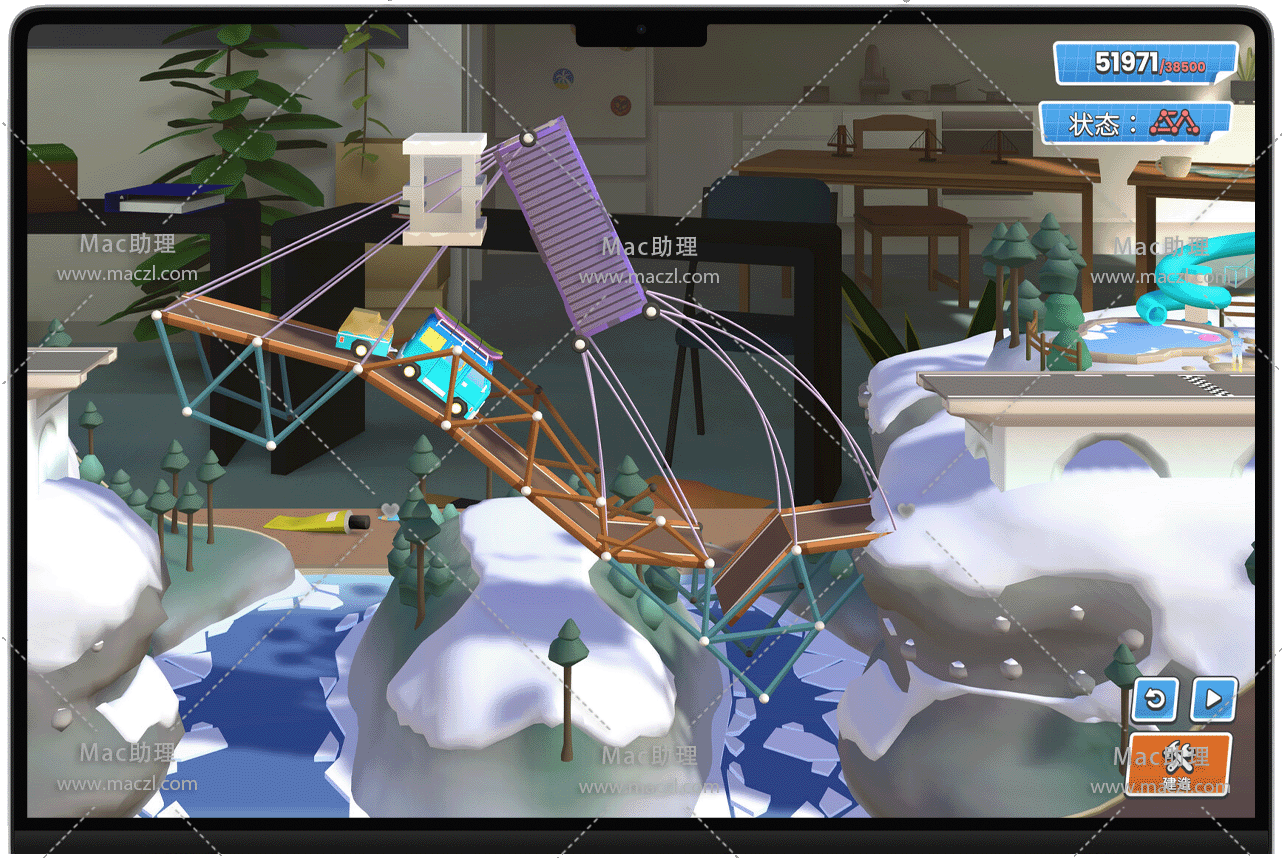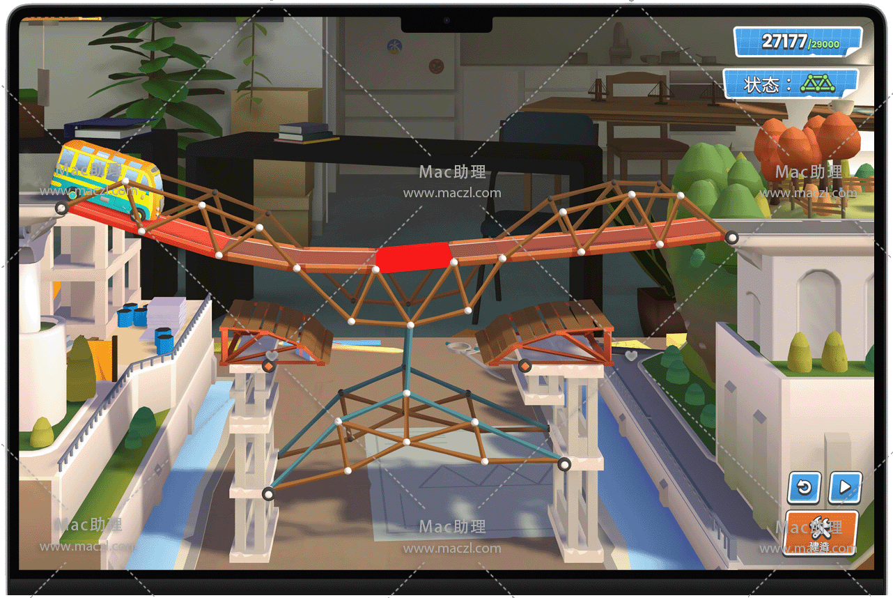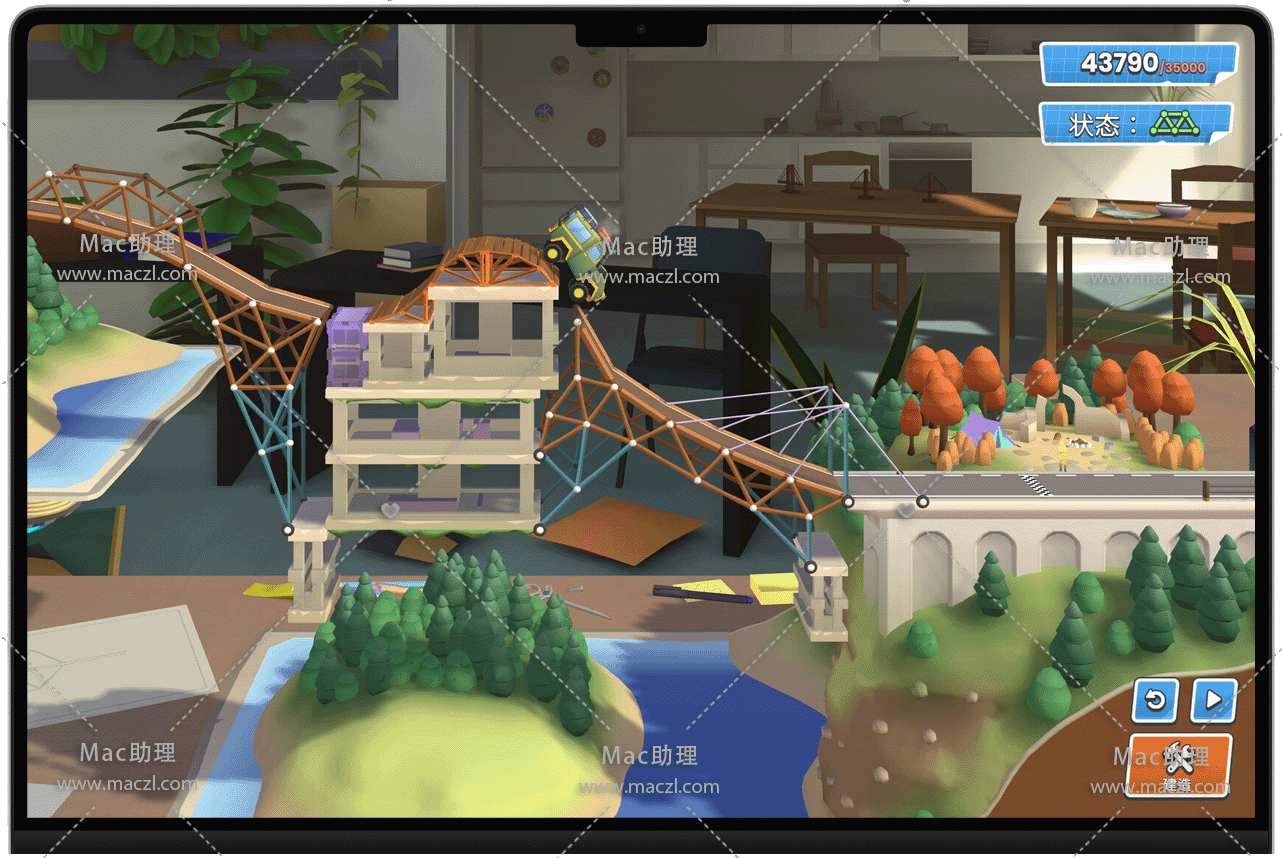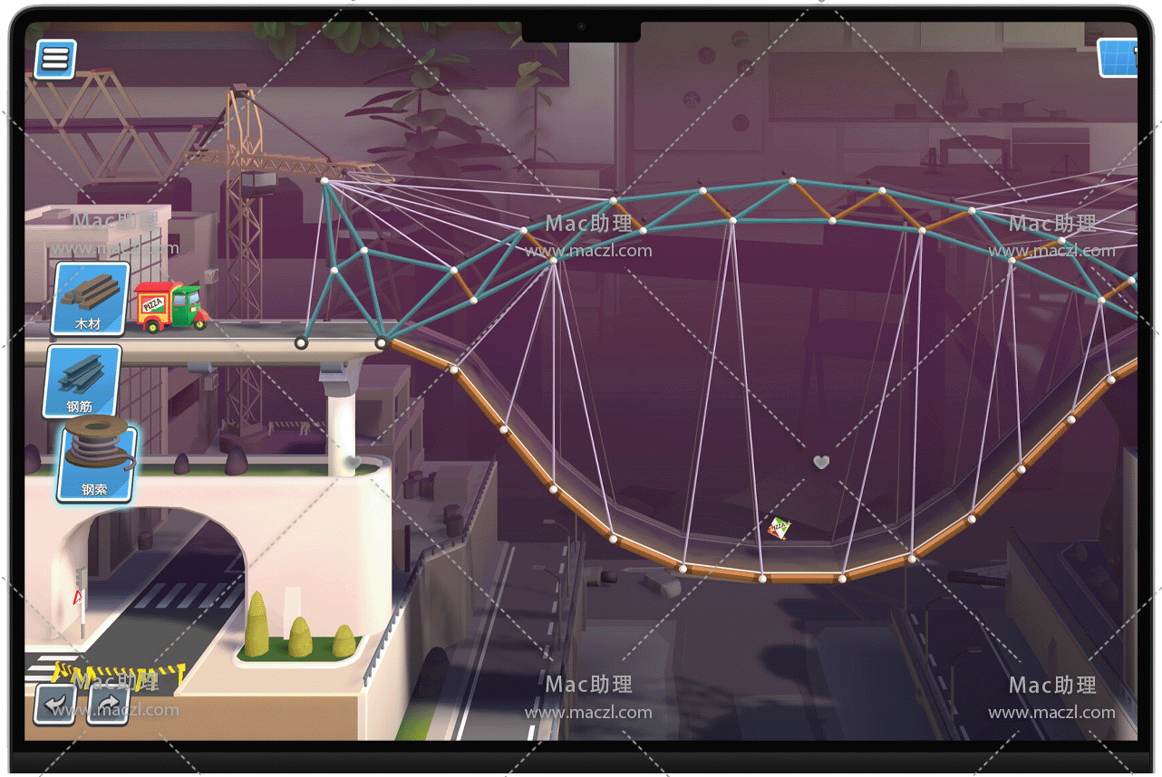 将桥梁建筑师的构想化为现实:使用动态 3D 微缩模型,设计建筑并进行模拟,观看你的作品接受终极稳定性测试。