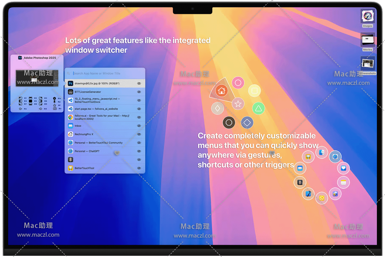 BetterTouchTool是一款功能强大的功能强大的应用程序,可让您自定义Mac上的各种输入设备。目前,BetterTouchTool支持: