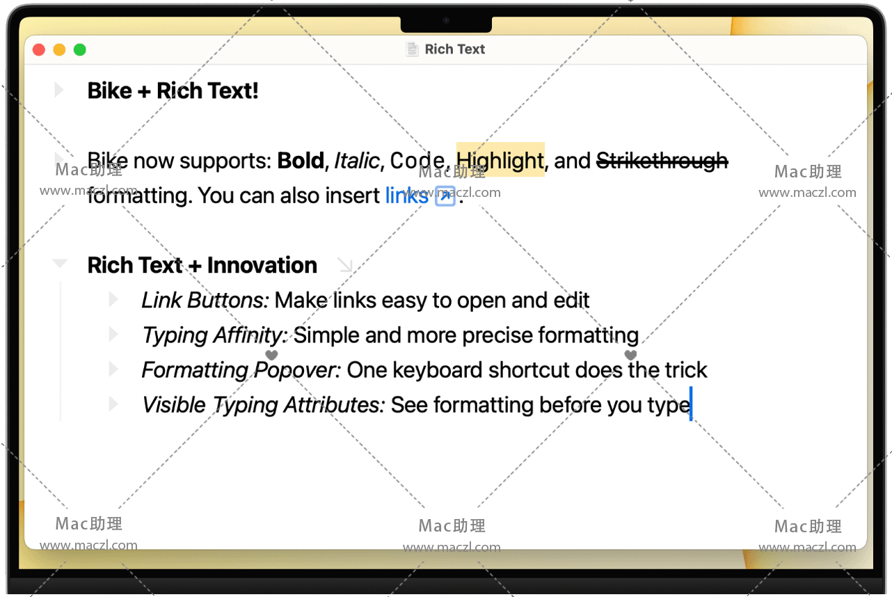 Bike是一款为Mac设计的异常快速的写作应用程序。