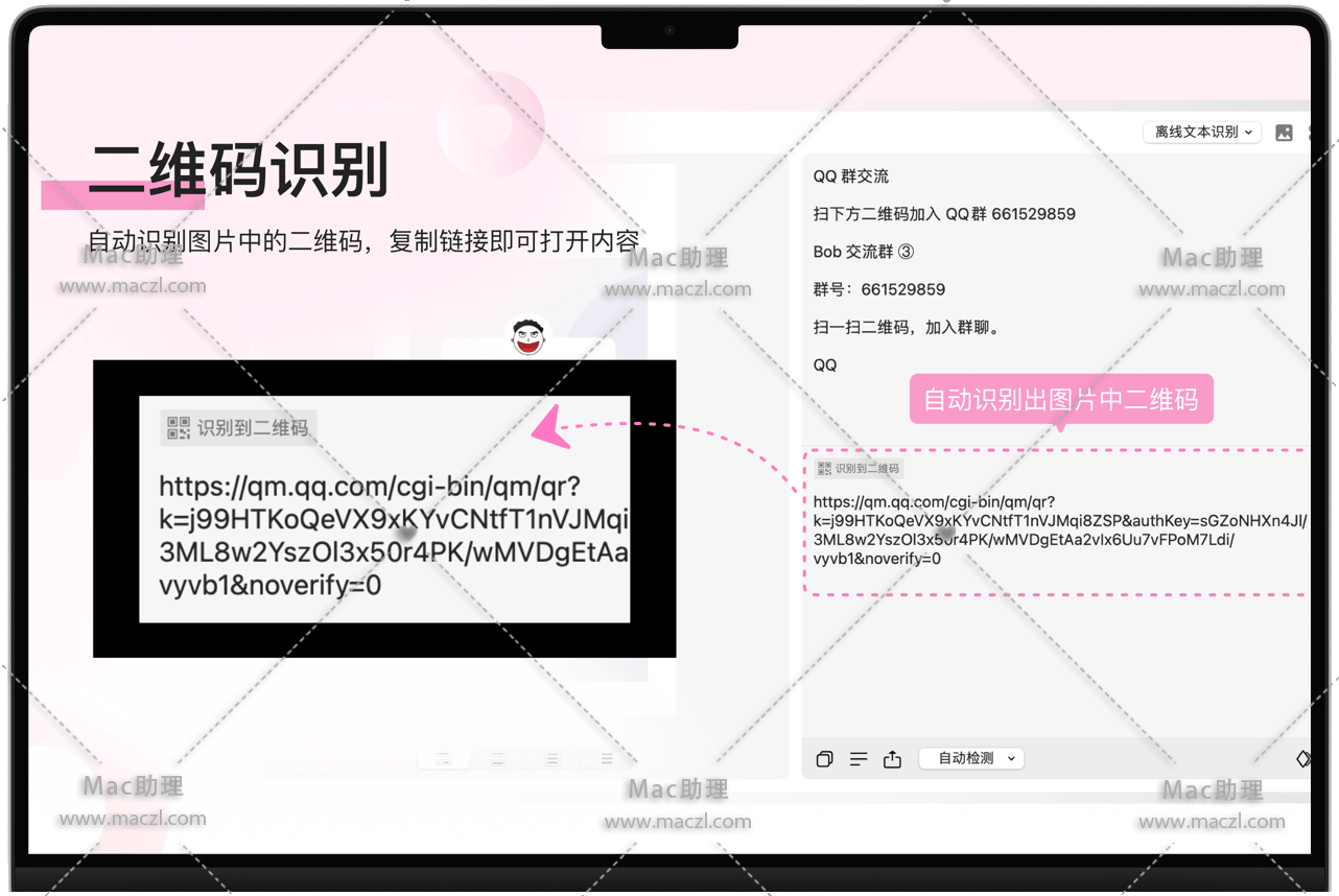 • 二维码识别:自动识别图片中的二维码