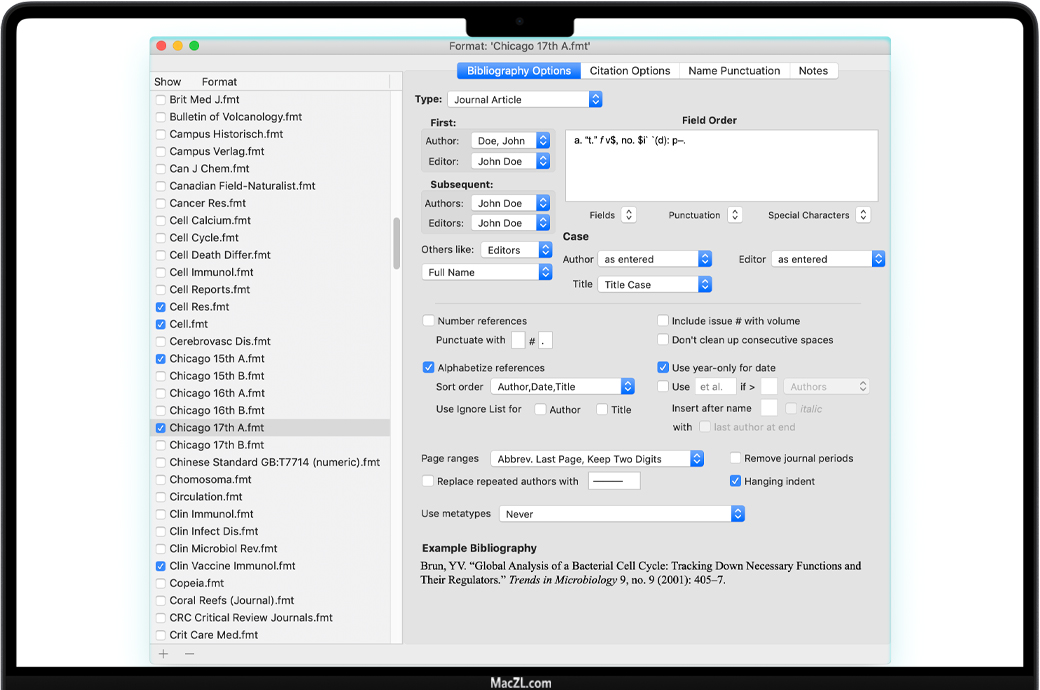 出版商对引文和书目的出现方式实行严格的规定。书签提供了直观的格式编辑器您可以使用或修改我们已经发货的数百个,或创建您自己的。