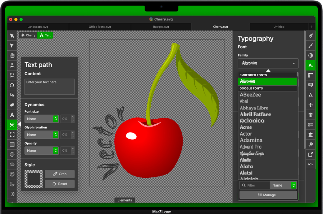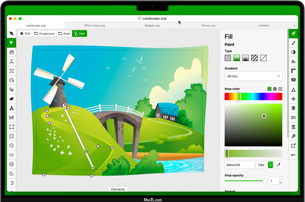 简洁直观的用户界面,深受Inkscape,Sketch和Adobe Illustrator的启发