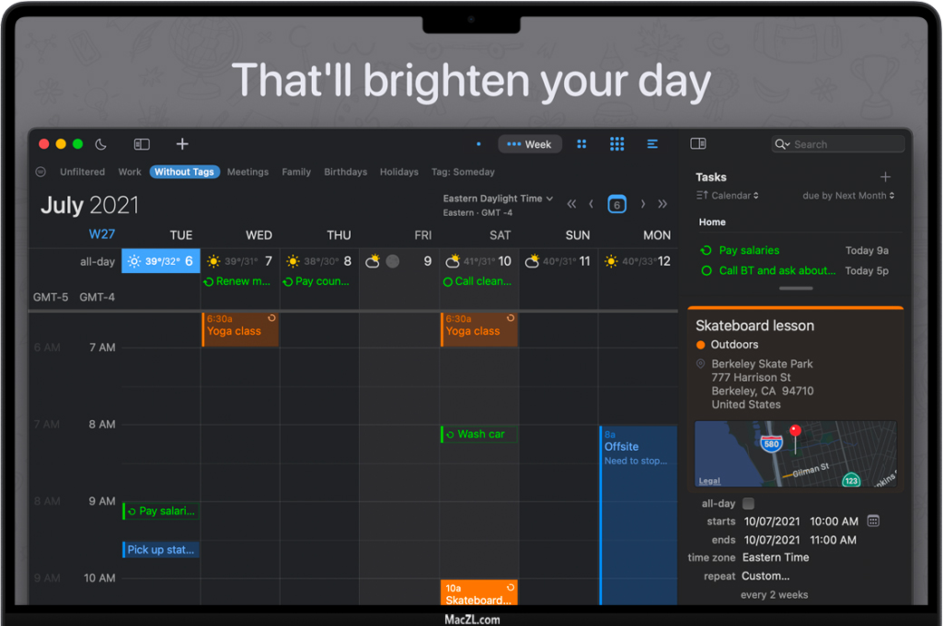 BusyCal for Mac 是一款优雅且易于使用的日历,旨在让您的生活更轻松。当您的一天被安排到分钟时,您需要一个不是其他琐事的日历。进入BusyCal应用,包含旅行时间跟踪器、集成的待办事项列表和快速添加事件等便利功能,BusyCal一定会为您节省时间和压力。此外,它的即时同步功能可以轻松切换设备或管理多个工作和个人活动日历。