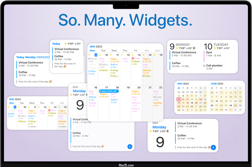 BusyCal 在可移动、可调整大小的浮动窗口中显示提醒,可以设置从现在开始或事件开始前任意分钟数的推迟提醒,或者一下设置多个推迟提醒。并且即使 BusyCal 主应用并未运行,BusyCal 提醒也会触发,因此您绝不会错过重要的约会。