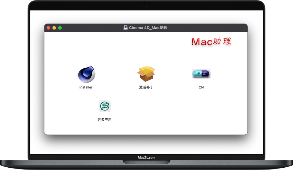 C4D安装包下载完成后,打开如上图,请参阅 Cinema 4D for Mac 苹果C4D软件安装指南 进行安装即可。
