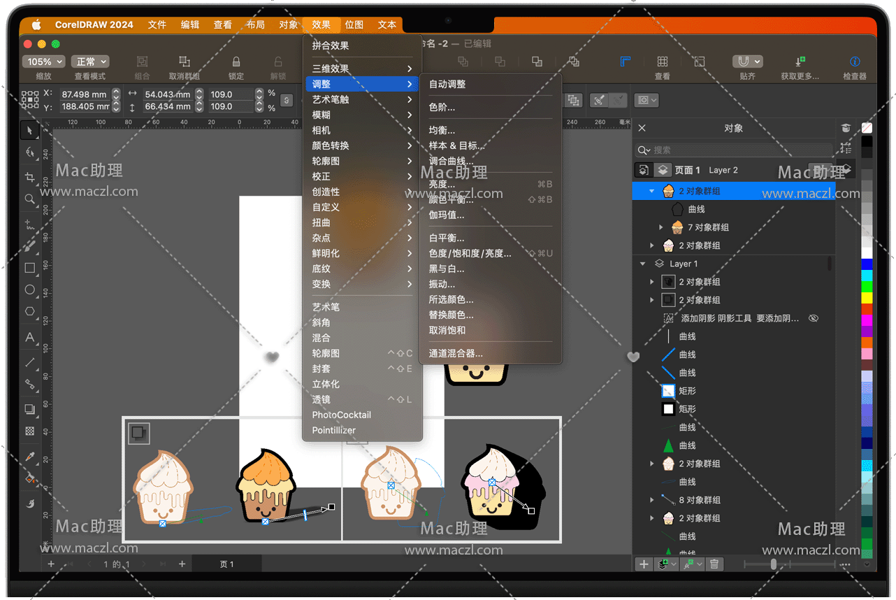 无需担心会破坏原始图像或对象,便能编辑位图和矢量图。创建块阴影、对称插图和透视图,所有这些都是非破坏性的,并在 CorelDRAW for Mac 和 Corel PHOTO-PAINT for Mac 中应用一些可逆的调整和效果。