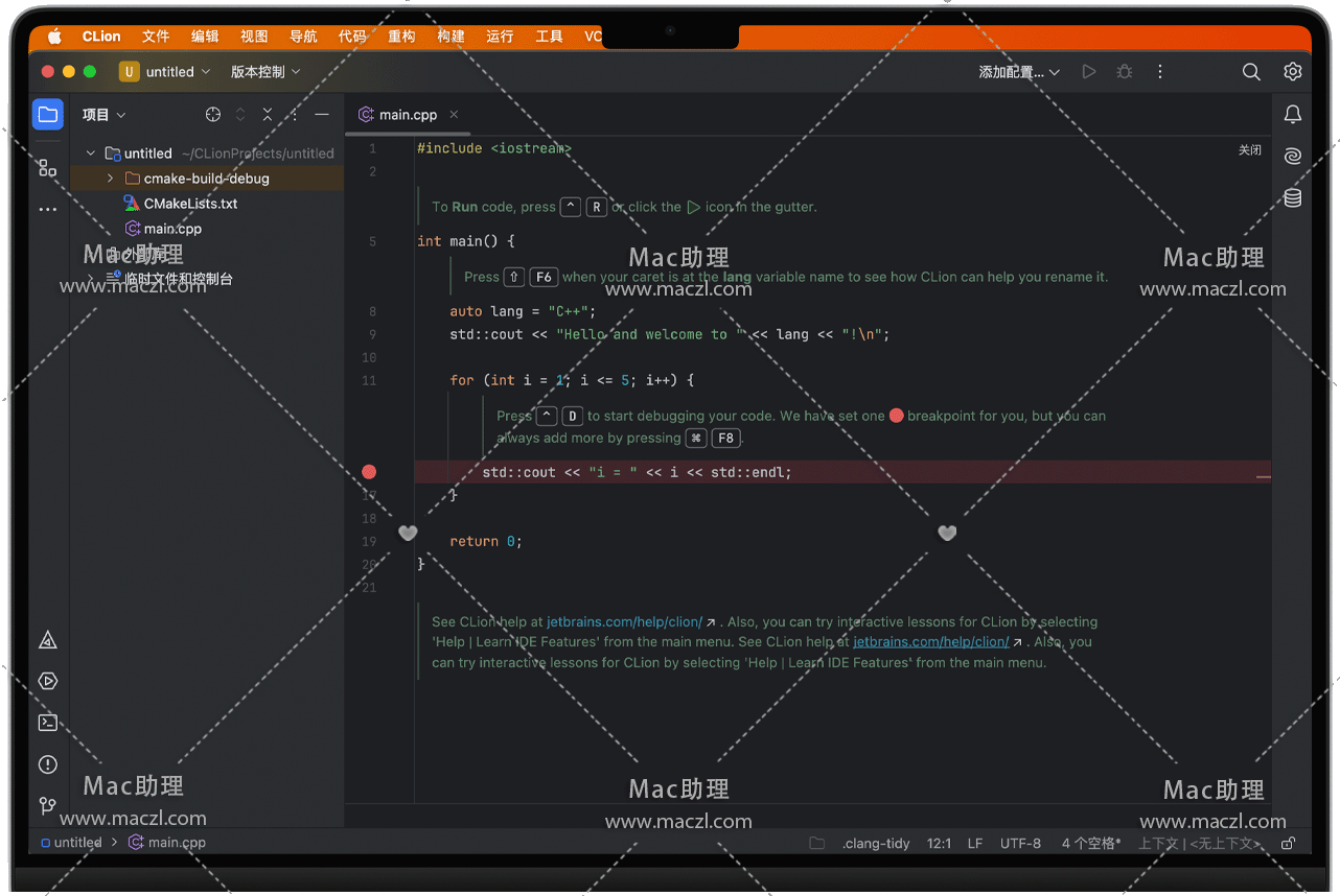 JetBrains CLion 2024 for Mac 是一款功能强大的IDE,可帮助您在macOS的系统上使用C和C ++进行开发,通过智能编辑器,代码质量保证,自动重构以及与CMake构建系统的深度集成来提高您的工作效率。 同时,CLion 2024还提供了代码重构、导航和集成调试等核心功能,帮助开发者更轻松地进行项目开发和调试工作。此外,该版本还扩展了项目模型支持,增加了底层程序集查看工具,并为嵌入式开发者提供了设备树文件支持。