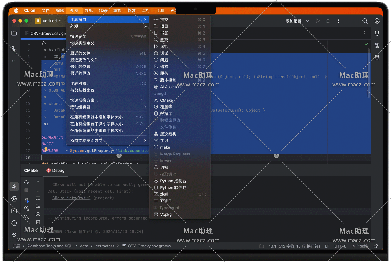 CLion使用项目模型在编辑器中告知其编码帮助,重构,编码样式一致性和其他智能操作。支持的格式包括CMake,Makefile,Gradle和编译数据库。