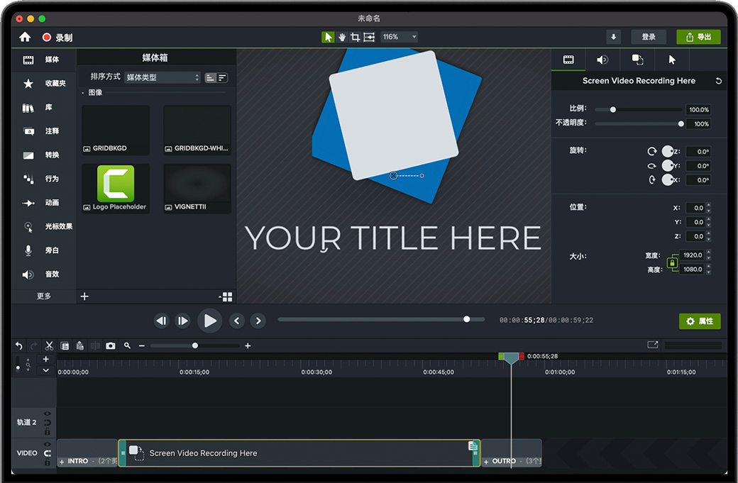 简化编辑Camtasia 简单的拖放编辑器使添加、删除、修剪或移动视频或音频部分变得轻而易举。 | 预建资产自定义 Camtasia 库中的任何免版税资产,并将它们添加到您的视频中以进行专业润色。 | iOS捕获将您的iOS设备直接连接到您的Ma的,直接从屏幕录制,然后添加手势效果来模拟视频中的点击、滑动和捏合。 |