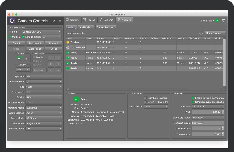 如果您的相机分散在多台计算机上,则该软件可以选择通过网络传输照片并将它们收集在一个位置,为下一步工作流程做好准备。