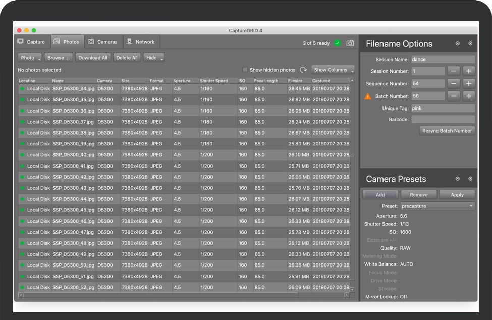 CaptureGRID4 是一款数字摄影工作流程应用程序,可用于栓系式拍摄,远程拍摄和高级相机控制。