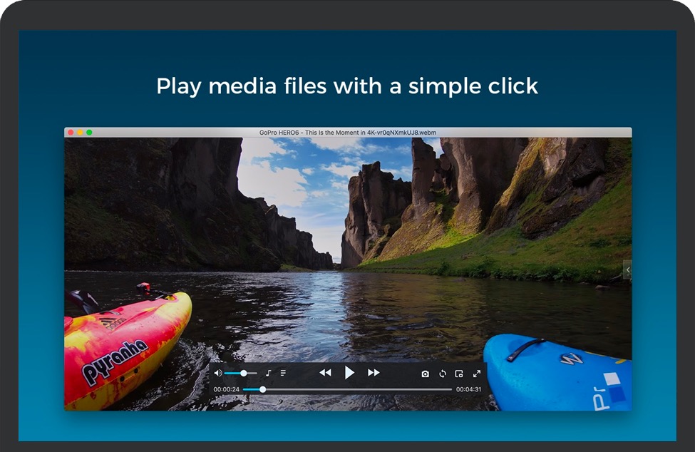 *易于使用的界面,只需拖放视频,通过播放/暂停/停止、前进/后退、音量+/-/静音、旋转、匿名模式快速播放视频。