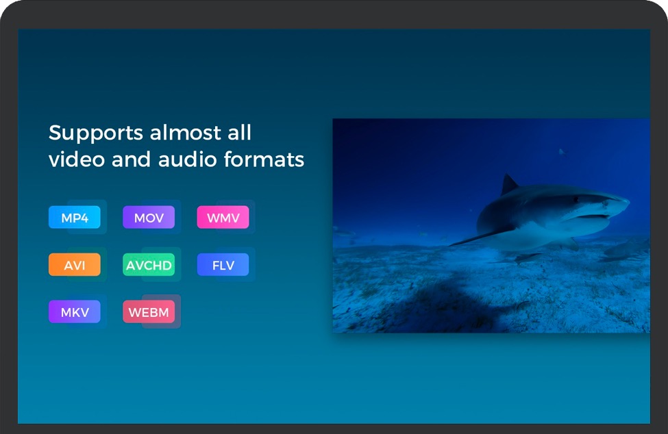 *支持几乎所有的视频和音频格式,如MP4、MOV、WMV、AVI、AVCHD、FLV、MKV、WEBM、MP3、M4A、WMA、AAC、FLAC、WAV等。