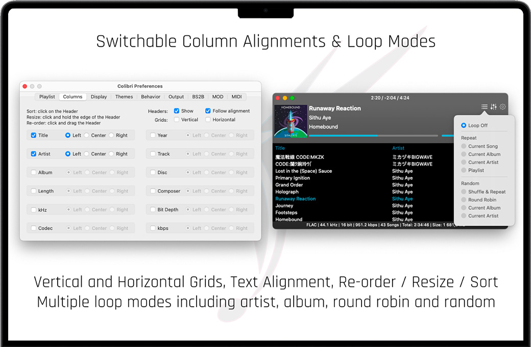 Colibri 尽最大努力避免播放前、播放中甚至播放后的大多数问题。加载不受支持的文件显示为错误消息,加载后消失的文件会自动删除并在播放列表中到达时跳过。Mac 无损播放器在开发时考虑到了灵活性和纠错。