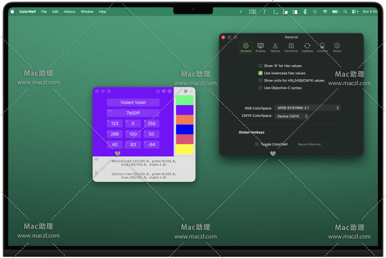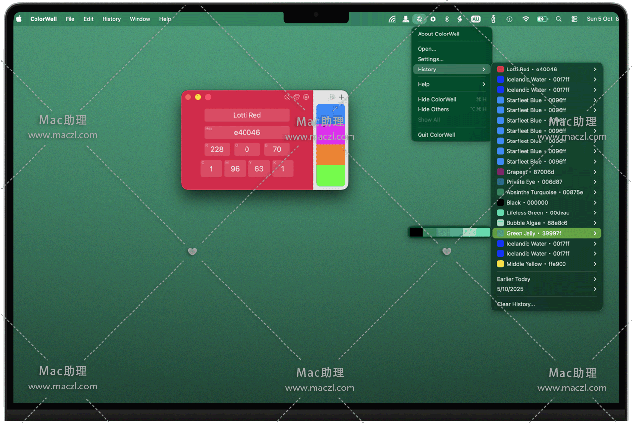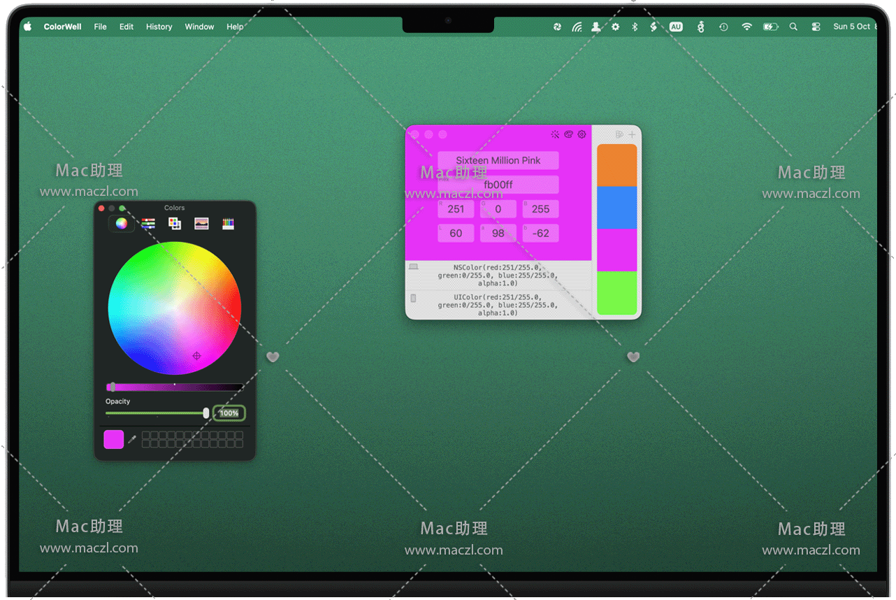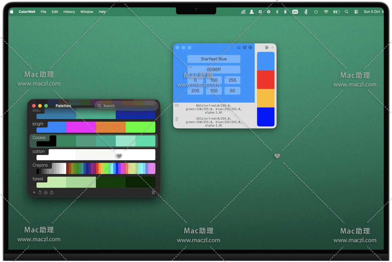 ColorWell for Mac 是一款强大的调色板,支持与macOS系统调色板的同步。您可以导入/导出Adobe .ase和Apple .clr调色板文件,拥有无限的历史记录,支持 Swift / Objective-C 颜色代码生成,支持按名称,十六进制,RGB,HSL,HSB,Lab和CMYK更改颜色,支持从图片提取颜色以及生成配色方案。