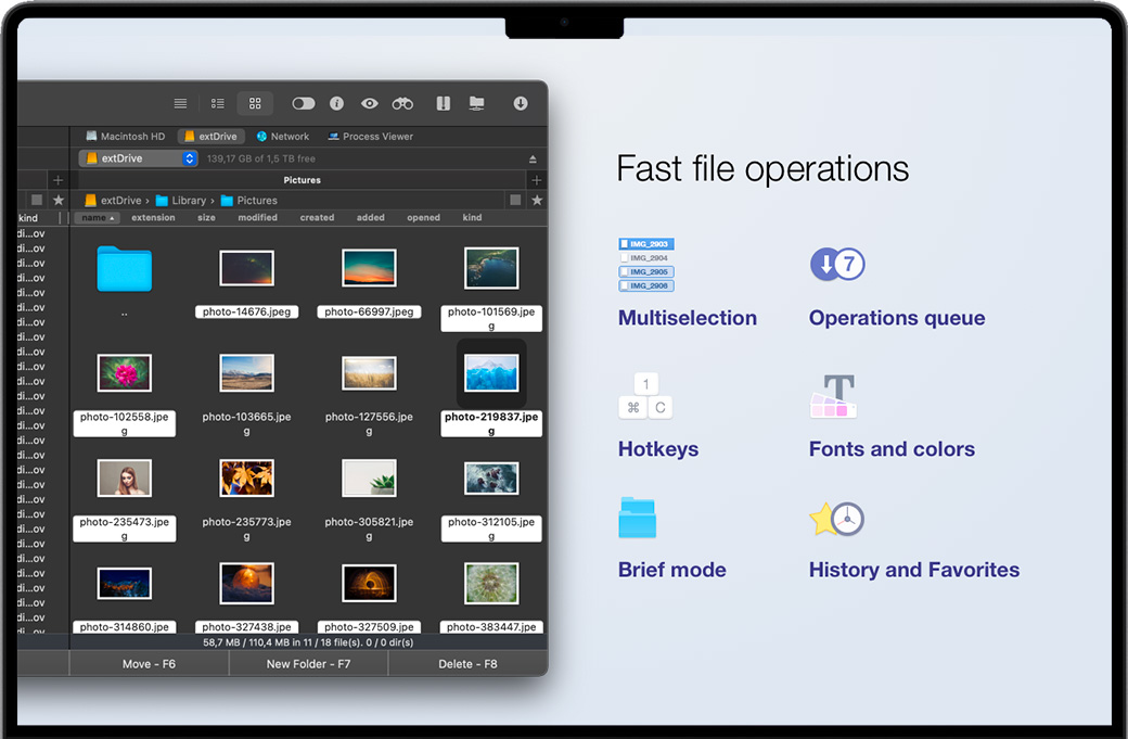 Commander One PRO 是一款可靠的 Mac FTP客户端。 该软件有预设的颜色主题,同时,也允许用户自行创建主题,最大程度满足用户的便利和个性需求。