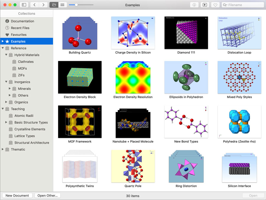 您可以在库的浏览器视图中浏览结构:按文件夹分组或平面视图,或者只是在库的集成“CrystalViewer”中浏览旋转结构及其注释。这不仅仅是一个静态库:您可以添加自己的内容、将结构分组到文件夹中并利用 CrystalMaker 强大的搜索功能:按文件名、注释或化学式。