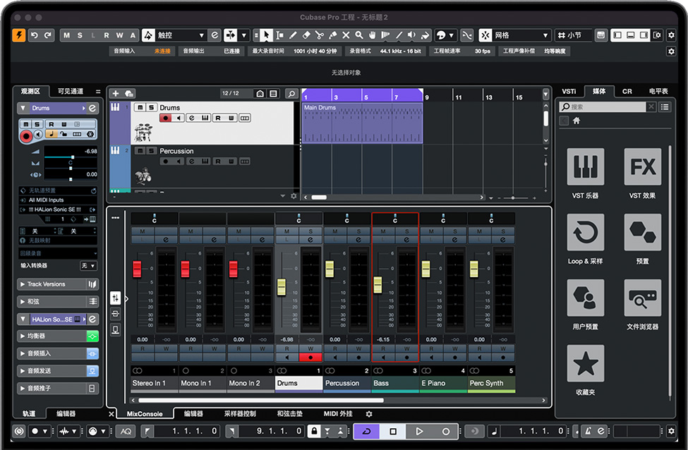 性能改进我们一直在努力提高Cubase的整体性能,并且通过Cubase 12,Cubase在几个领域展示了显着的改进。在大型项目中导航和缩放时,我们升级了它的性能。Cubase 12比以往任何时候都更快、更快捷。 | 平滑的波形绘制Cubase 12引入了新的平滑波形绘图。它让眼睛更轻松,让您更轻松地精确编辑音频。 | 原生支持M1芯片对于使用最新Macintosh计算机的用户,Cubase 12引入了原生对Apple(M1)芯片的支持。 |