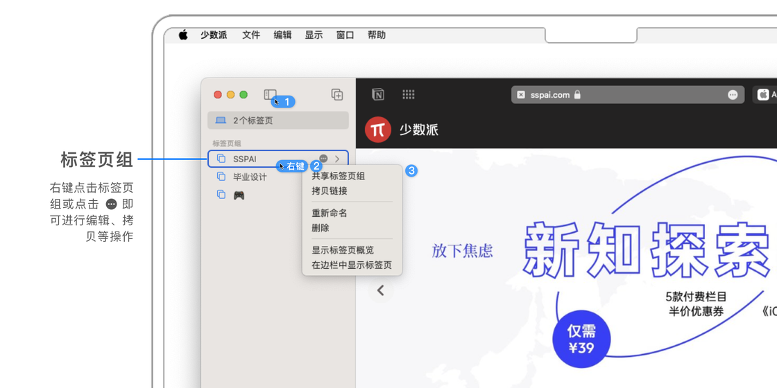 在 macOS 的最新版本中,苹果继续强化了标签页分组的相关功能。