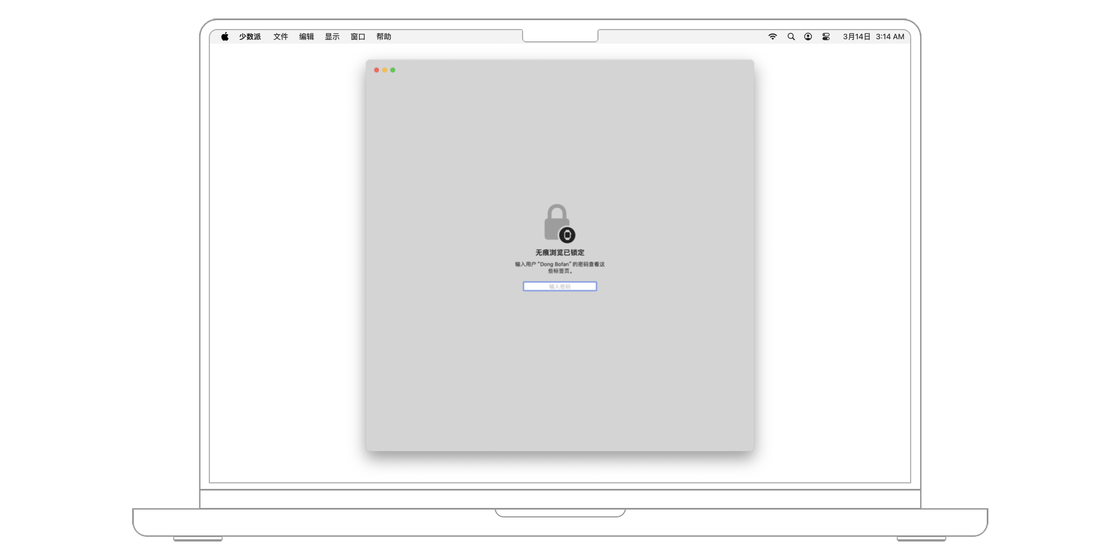 安全性方面,无痕浏览窗口现在可以在 Mac 电脑闲置时自动上锁,防止被附近的人偷窥。解锁时,则可以通过登录密码或者 Touch ID 来方便地解锁。