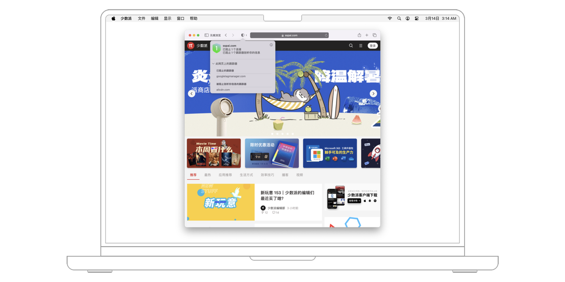 防追踪方面,苹果为新版本的无痕浏览功能加入了移除浏览时被添加至 URL 的跟踪参数功能,以及可以完全阻拦已知跟踪器载入页面。