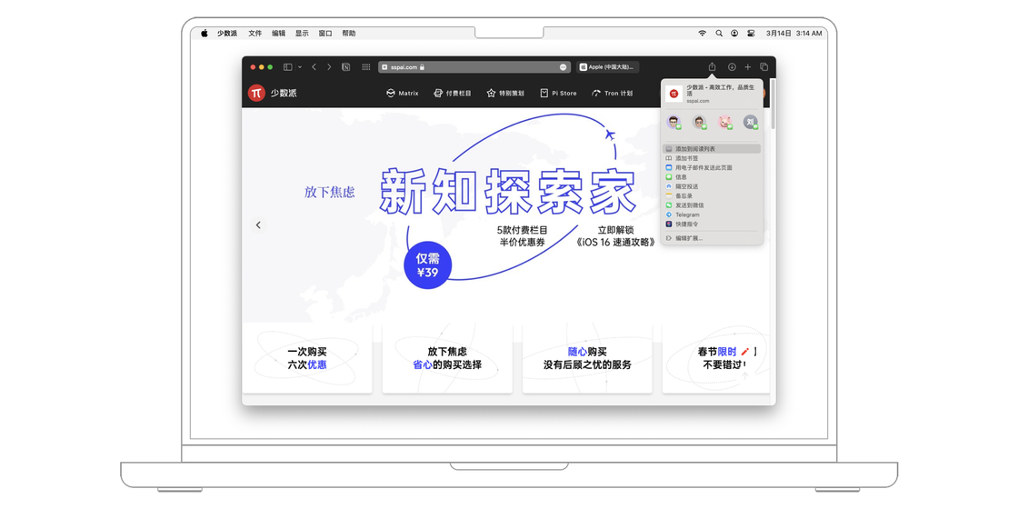 在 macOS 系统中,我们可以使用 Chrome、Microsoft Edge、Firefox 等第三方浏览器,但是对于大多数初次了解 macOS 的用户来说,苹果官方的 Safari 浏览器从来都是最优选择,因为只有 Safari 浏览器才可以最快最全地获得系统新特性适配,同时开箱即用、简洁美观、多平台同步的特点也对 Mac 新手有足够的吸引力。