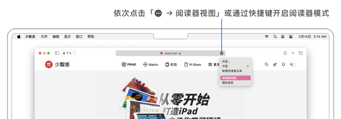 把网页保存成 PDF 文件可能会把一些不需要的元素,甚至是广告也保存下来,阅读体验不佳。如果利用阅读模式,则可以在获得更干净的页面后再保存网页。步骤如下: