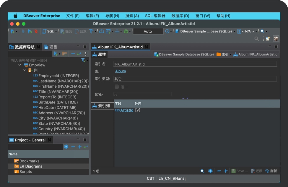 - 数据库连接树及其元数据结构到最低级别:表、视图、列、索引、过程、触发器、存储实体(表空间、分区)和安全实体(用户、角色)
