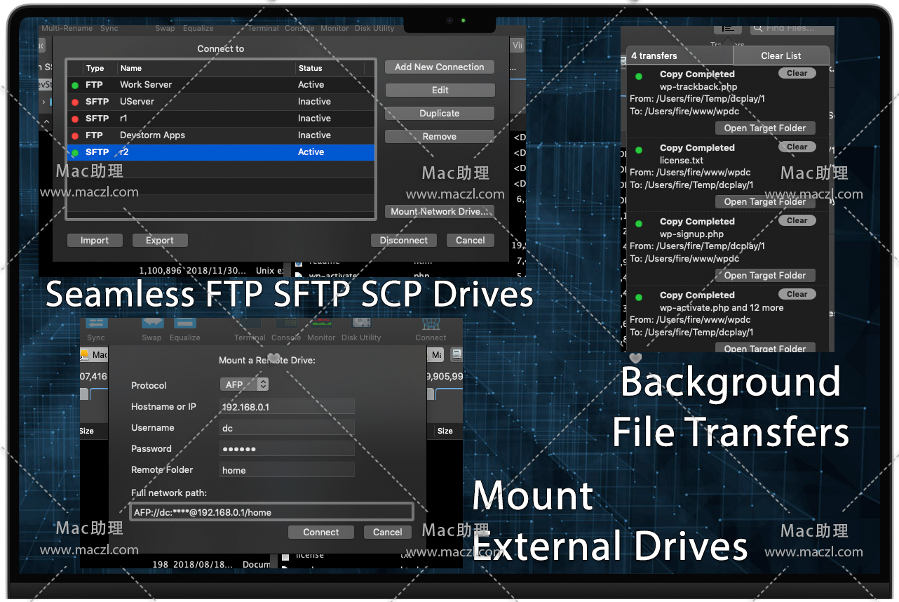 将数据传输到服务器时,无缝的FTP SFTP和SCP连接将使您的生活更轻松。