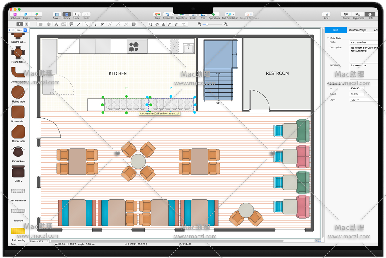 ConceptDraw DIAGRAM 16是一个专业的工具,可以想象您的蓝图、建筑和平面图;适用于家庭、商务中心、餐厅、商店或办公室布局。