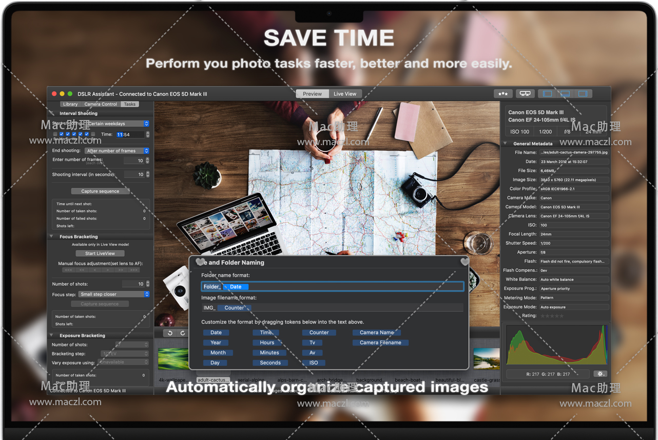 DSLR Assistant for Mac 是一款数码相机远程控制软件,操作连接到Mac的佳能相机,高效捕获数字图像,自动执行各种照片任务,并在整个工作流程中保持高质量的图像。