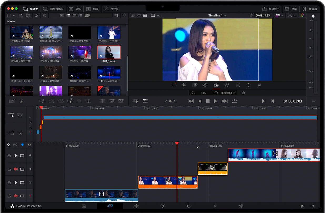快编页面专为时间紧迫、需快速交付的项目设计,旨在提升剪辑速度。同步素材箱和源覆盖工具是剪辑多机位节目的快捷方式。借助双时间线、源素材带和智能剪辑工具,您的工作效率将大幅提升。快编页面新增垂直时间线布局、画外音面板、专用关键帧编辑器、MultiText 工具、全新实时覆盖控件等功能!