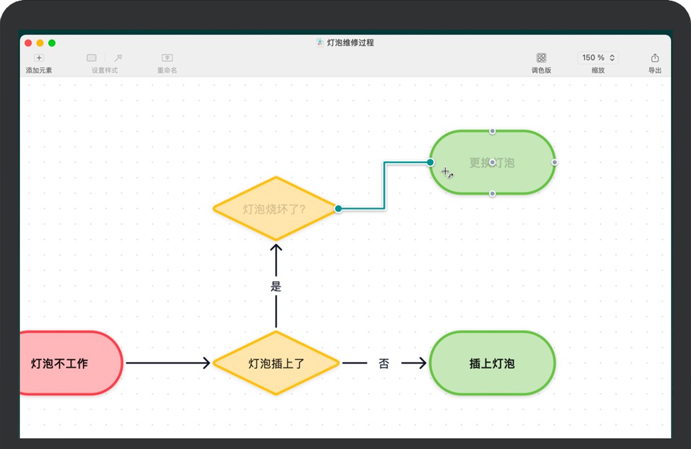 根据您的目标,您可以将图表变成任何形状。Diagrams通过网格和无限画布等功能支持您的流程。这意味着您不必担心图表“结束”——该应用程序可以将任意数量的数据包装成一个完美的布局。