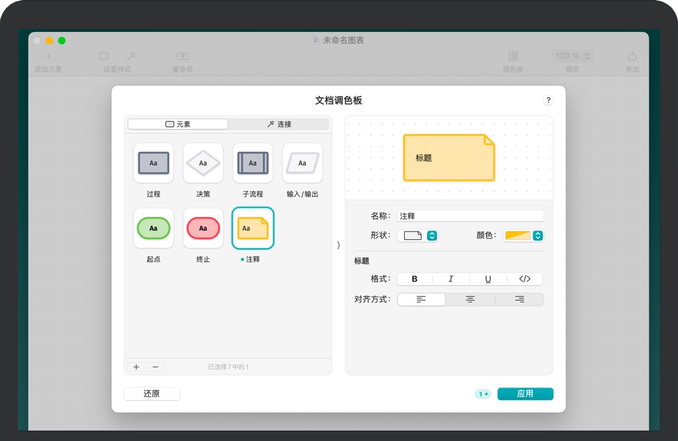 Diagrams为您提供了大量的文本格式和样式选项来自定义您的类型。从九种元素颜色中进行选择,包括通常用于专业图表的灰度颜色。对文本使用粗体、斜体或下划线等。