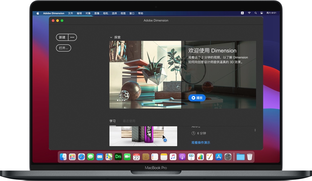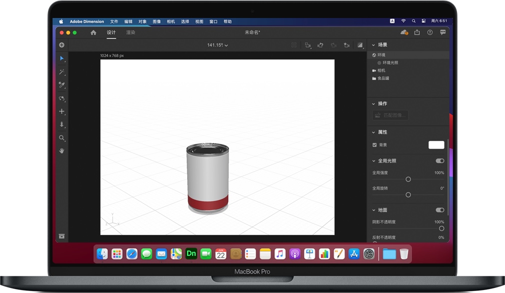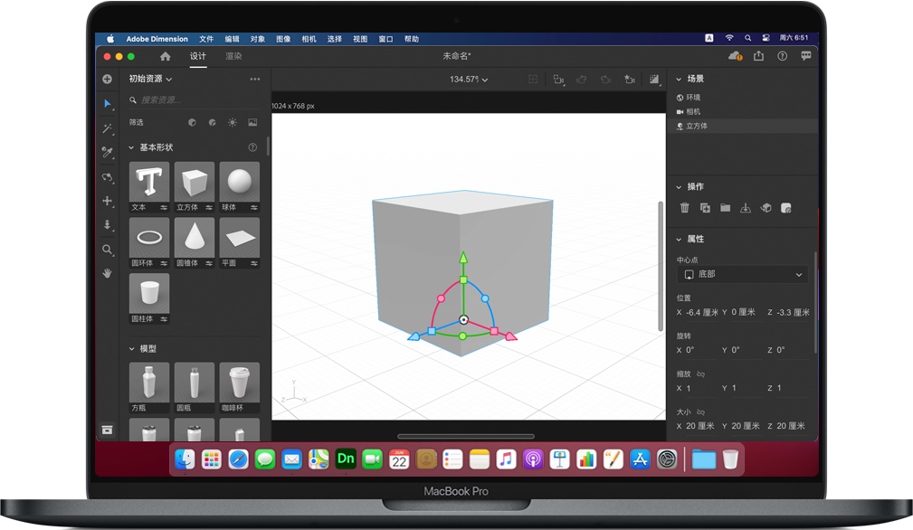 以3D可视化您的品牌,包装和徽标设计。将矢量图形或图像拖放到3D模型中,即可在实际环境中查看它。可以在应用程序内轻松地在Adobe Stock中搜索针对Dimension优化的3D资源。
