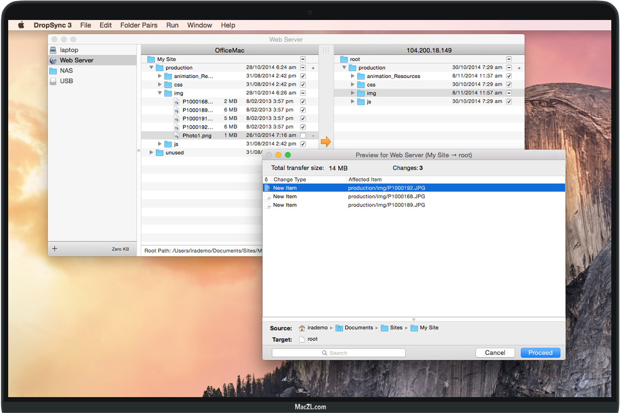更好的设计在设计DropSync 3时,我们花了很长时间和精力思考如何使DropSync 2最棘手的方面变得简单。最终的结果是,对于新手和有经验的DropSync 2用户来说,界面应该是自然的。 DropSync 3特征电动浏览器只需单击即可轻松地并排比较文件夹和包含/排除子文件夹。无论您是通过SFTP浏览本地驱动器上的文件夹还是远程计算机上的文件夹,您都会看到相同的内容丰富的文件视图。 更少的复制速度更快DropSync在引擎盖下的使用远程同步只传输已更改的部分文件,因此通过网络进行更新特别快。我们一直致力于降低扫描时间和低内存使用率,因此在本地传输上也不会无精打采 监视文件夹是的。只需告诉DropSync监视文件夹的更改,它会在您工作时在后台更新 别挡道仅菜单栏模式允许您运行、配置和监视同步,而无需占用基座空间。 大量的期权轻松配置自定义筛选器以排除或包括某些文件类型,设置备份文件夹以存储覆盖或删除的文件,甚至自定义技术细节,如DropSync如何处理符号链接和权限 详细预览DropSync的预览确保您可以控制每个同步。查看每个文件将发生什么的完整详细信息,并通过按文件名搜索轻松导航大型预览 DropSync 3中新功能DropSync 3提供了一些大的改变和数百个小的改进,包括来自我们的优秀用户的许多建议。以下是一些亮点 更简单、更强大的浏览器