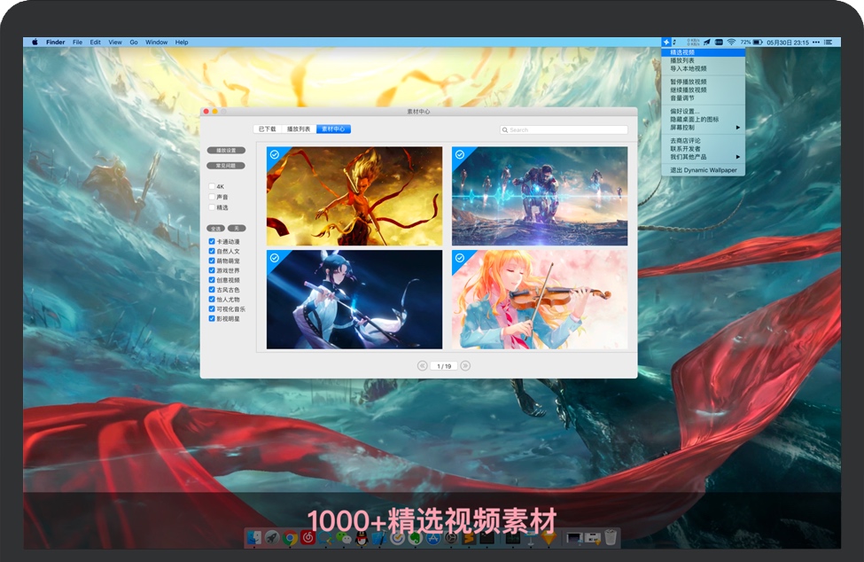 Dynamic Wallpaper for Mac 是一款非常火的超高清4K动态壁纸,让您可以每天享受来自全球新鲜精美的动态壁纸!Dynamic Wallpaper 拥有900+精美视频素材,让您一键下载即可应用,也可导入本地视频,同时可以将视频设置为您的电脑屏保,非常好用!