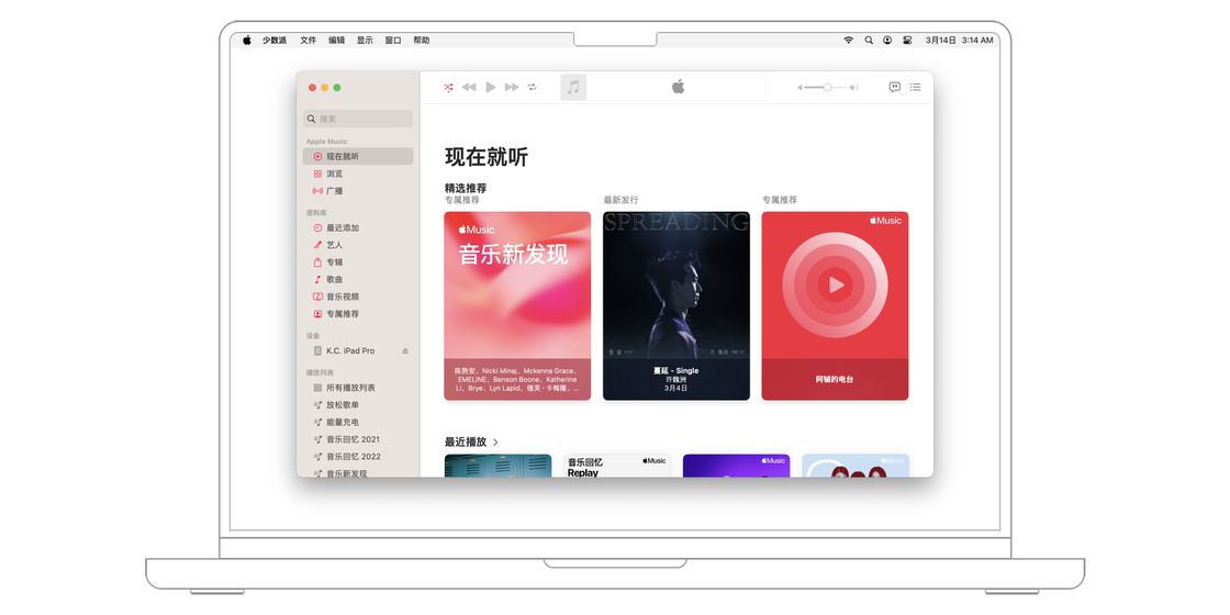 在本章节的第一部分中,将主要围绕中国大陆地区的 Apple Music 展开,在一些通用功能上也会提及其他地区的功能服务。